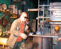 FACTORYの熱くなっているトタン壁に