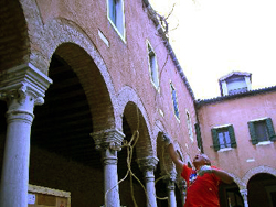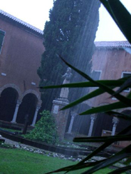 | ヴェネチア浮遊 その5 鳥の夢、フランシスコ像、硝子と税関 朝も暗いうちからボーボーと しつこく不気味に鳴き続ける鳩は、 <平和>なぞという政治の不毛なコトバの象徴には 似つかわしい。 下請けから貰った瑠璃鳥を 自慢気に見せてくれた土建屋は、 バブルが弾けたら倒産して小鳥も死なせてしまい、 四国のヤクザ伝蔵さんは小鳥が好きで、 朝早く違法のカスミ網を掛けに行っては捕った小鳥を、 自分の篭の中で飼っていたし、 好んで鳥ばかり描く絵描きのことなぞを、 コーンフレークを喰い八時集合までの少しの時間を 一服しながら思い出していた。 本人達に訊いたことはないが、 彼らは空を飛ぶ夢をみているのだろうか。 明日終わると分かった 最後の晩餐に何を喰うかという番組を見かけたことがある。 コーンフレークなんて鳥の餌だと 吐き捨てるように言ったヤツがいたが、 終わると分かる明日に興味もないし、 鳥になりたいとも思わないオレの朝は、 鳥の餌でも充分満足している。 今朝の肌寒い空には厚い雲が走っていた。 一〇時過ぎには雨になると思っていた。 ファビオやアレッシオ兄弟は時間も正確だし、 オレのシゴトを正確に理解しているから 作業は順調に進んで完成してしまいそうな勢いである。 ![]() ジャパンでなら大型クレーンで 部材を移動させて作業するのだが、 梱包を開いて全部人力で重い鉄を運び、 ベースのボルトアップまで済んだところで、 カミナリが盛大に鳴り出して途端に土砂降りになった。 ずぶ濡れで回廊に待避して、微動だにせず、 陽気に掛け合っていた声もなく屋根から 滝のように墜ちてくる雨をみんな眺めていた。 オレのシゴトに興味をもって 何かにつけて話しかけてくる一番若いマルコさえ、 大人しく雨に打たれるフランシスコ像を 大人しく見つめていた。天変が通り過ぎるのを ただジッと待つそれぞれの目の先にある フランシスコ像の辺りに、 まだ立ち上がってない <LA LUCE CI RCOLANTE> を描く沈黙は豊かなジカンだった。 予想は大きくずれて午後四時。 ![]() 大量の雨は一時間降り続けたが、 すっかり濡れた鉄は滑って危ないので 今日の作業はここで中止にした。 ミラノのギャラリーでオレが創った 初期の硝子展が二十七日オープンするのだが、 オブジェが税関で停まっているとの連絡だ。 徐々に強くなるユーロとますます弱くなる円、 <LA LUCE CIRCOLANTE>の旅が 続いているオレの世界とは関係なく、 関税だとか何かと騒がしくなっているらしい。 『蔓草のコクピット』 (つるくさのこくぴっと) 篠原勝之著 文芸春秋刊 定価 本体1619円+税 ISBN4-16-320130-0 クマさんの書き下ろし小説集です。 表題作「蔓草のコクピット」ほか 「セントー的ヨクジョー絵画」 「トタンの又三郎」など8編収録。 カバー絵は、クマさん画の 状況劇場ポスターの原画「唐十郎版・風の又三郎」です。 |
