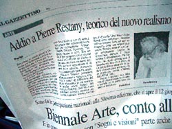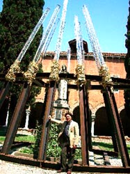 | ヴェネチア浮遊 その13 教会、突然の訃報、符合するジカン。 今回のフランチェスコ教会での個展が決まった十二月に、 脱着自在のボルトナットで巨大に組立、移動できる方式で 武川FACTORYで創った<循環するヒカリ>を、 武川の山の上でシミュレーションしたのは 十二月も深まっていた。 その様子を撮ったビデオにPAOLOはじめ <ARTE COMMUNICATIONS>の スタッフ全員は、想像外の大きさと フランシスコ像を取り囲み構築する危険な作業に呆れて、 個展自体をオーガナイズすることに 反対だったという。 その為に狭い空間で500kgまで吊り上げる 手動クレーンまで設計して、 なんとかOKを取り付けたのだった。 ニッポンでいえば法隆寺の中庭に 12トンの鉄と硝子を運び込んで オブジェを創るようなものだ。 オレは充分自信はあったのだが、 フランチェスコ教会の中庭をオレに解放し <la Luce Circorante>を創ることや、 <Campanella>を回廊に張り巡らすコトを許してくれた ロベルト司教や、 この場所をオレにオーガナイズした PAOLOの懐の深さにあらためて感謝する。 ![]() 日に日に細かいところまで計画どおりに建っていき PAOLOもロベルト司教も 喜んでいるのでホッとしている。 開催日の六月十二日も近づいた昨日、 PAOLOが教会のオレを、 大きな訃報を抱えて訪ねてきた。 美術批評家の第一人者 ピエール・レスタニ氏が亡くなったのだ。 TSUCHYを挟んだ三人は <循環するヒカリ>を眺めていた。 「OPEN98は直前に亡くなったセザールの 出品したオブジェは大反響だったし、 去年は始まる三日前にオフクロが死んだけど、 オノヨーコが出品して話題になった 女性の彫刻展だったんだ。 今年はジーナが初めて参加するし、 レスタニとKUMAを会わせるのが楽しみだったのに…」 二十年来の彼の教え子だった PAOLOの落胆振りは大きい。 「会ったことがないが ピエール・レスタニにこのヒカリを捧げるよ」 ![]() 「ありがとう。こんな大きなKUMAの作品が ここに出来上がったのは奇跡だよ」 彼は少し笑顔を取り戻した。 サミットより大事件の訃報は ヨーロッパ中を駆けめぐった。 <OPEN2003>の最高責任者で、 オレを招待したのも彼だし、 オレのオブジェに批評のコトバを 寄せてくれる予定だったし、 十二日の個展オープニングに来るのを 愉しみにしていたらしい。 ヴェネチアの船着場で屯していたゴンリエーレや 水上バスの車掌たちも、 新聞記事を見ながら残念そうに両手を左右に拡げた。 労働者の果てまでのも悼まれる美術批評家が ニッポンにはいないなぁ …とどうでもイイ事柄が頭蓋をよぎった時、 「彼と永いつき合いの盟友GINOに KUMAのテキストを書いてもらおうと思っているんだ」 PAOLOがオレに提案した。 「ああ、いいアイデアだ。 しかし、彼も早く頼まないとな…」 オレは二,三日前ミラノの個展会場で強い光に晒された GINOの白っぽい顔を思い浮かべた。 「分かっている。明日電話してみるよ」 九十八年十二月、アンテプリマのIZUMIさんが 「友達のセザールに会わせる」 という約束をしてくれた。 サハラ砂漠に遠征してオブジェを創った帰り、 セザールに会いにパリに向かう前日、 ニジェールの宿で彼女からの <訃報>のEメールを受け取ったのだった。 妙に符合する過ぎ去っていくジカン。 しかしヴェネチア、ミラノ、リド島と 続く往けるところまで行くオレのイタリア三連発は これから始まるのだ。 ![]() 『蔓草のコクピット』 (つるくさのこくぴっと) 篠原勝之著 文芸春秋刊 定価 本体1619円+税 ISBN4-16-320130-0 クマさんの書き下ろし小説集です。 表題作「蔓草のコクピット」ほか 「セントー的ヨクジョー絵画」 「トタンの又三郎」など8編収録。 カバー絵は、クマさん画の 状況劇場ポスターの原画「唐十郎版・風の又三郎」です。 |