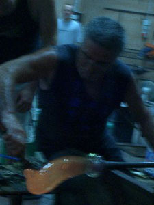 | <偶然>の連続 生まれるなり嗅覚と片方の聴覚を失ったまま 現象しているオレは、 無いモノは無いものとして過ごしてきたが、 己の体臭さえ知らないオレが 肥溜めに墜ちたところで糞の臭いも知ることはなかった。 花や虫や動物の生き死にとって 重要な要素の聴覚や匂いは、 他の器官でまかなって 格別不便を感じないオレにとっては、 余剰なモノなのかもしれない。 そんなオレは、ふたたびサンセルボロ島へ。 今日中のコンテナー解放はないらしい。 だからといって命まで獲られるわけじゃないわいと、 学校へ向かって林をゆっくり歩く。 PINOはやっぱり凄いマエストロだった。 オレが日本語をまくし立てながら ボールペンで描きなぐるドローイングを、 道具から手順から寸法から硝子の色、 量までを計算尽くした午後三時。 溶解炉が燃えさかり開け放った彼の教室前には、 ヴィデオやカメラを構えた他の教授や 生徒までが授業そっちのけで、 オレと彼のパフォーマンスが始まるのを 待ちかまえていた。 もちろんダンテやダビデ、クラウディオ、 トフィーらそうそうたるメンバー 総勢十人も勢揃いである。 前に運び込まれた黒板に、 オレがチョークで今回のデッサンをすると 全てが始まった。 一本のバーに巻き取った火の硝子を ピンセット状の道具やハサミで創っていく。 炉のなかで重力にゆっくり垂れながら 甲殻類の鋭い攻撃的な大きな爪が生まれ、 鋭いピンヒールが息づいていくKUMABLUE。 カドミュームが燃え真紅の球。 最後は、急遽溶接した鉄の箱に収め クリスタルを流し込んだ。 鉄錆に煙があがる。 みんなが共有する色々なモノが燃え、 充たされていた誕生する匂いをオレは目で嗅ぎ、 片耳で感じていた。 重くなった硝子のオブジェをポンテに着けて 徐冷炉へ収納したら拍手がおこり、 二時間続いた熱い教室のパフォーマンスは終わった。 「ありがとう。大満足だったよ、PINO。 また今度、もっと大きなプロジェクトでやろうぜ」 近づき彼の肩を叩くと、大きな肩や腕から汗が滴らせ、 ほんの少しだけオレより若い汗だくのPINOが 初めて崩した顔で 「グラッチェ」 柔らかい声だった。 『俺の教室は路地だったんだ…』 彼のコトバを思い出した。 極貧家庭の子だったPINOは、 凍った線路の氷を剥がすシゴトで家計を助けていた。 途中にあった硝子工場の窓から背伸びして覗く眼の先は、 職人等が飲む美味そうなコーラで 隙をみて飲みさしを盗み飲むことだった。 しかしある時見つかってしまい、 散らかった硝子を拾い集め 工場内の清掃シゴトをすれば コーラと小さなゼニをもらえるようになったという。 彼はその合間に硝子の全てを目で覚えてしまい、 十歳の時職人になると、 十三歳ではもう マエストロになっていたという天才ぶりだ。 ![]() 昨夜グラッパを呑みながら、 ゴミ箱のなかでピンホールのヒカリを眺めながら 編み物をしていたオレの話に、 ゴッドハンドを着けて生まれてきた彼が、 お返しにポトリと落としたのだった。 ゼニにありつくために駆けつけた職安や、 手配師のトラックが<肉体労働の市場>だったオレには、 <ワークショップ>なぞという なにも産み出すことのない ヘナチョコなコトバにしか聞こえない。 リド島に戻る水上バスでケイタイが鳴り、 CINZIAから、 商工会議所の社長が強力に抗議してくれて、 オープニングの前日に コンテナーが到着することが確実になったという知らせ。 間に合うか…、その為に土、日は完全休養にして、 のんびりと北野巨匠の <座頭市>の前売り券を買いに行くか。 『蔓草のコクピット』 (つるくさのこくぴっと) 篠原勝之著 文芸春秋刊 定価 本体1619円+税 ISBN4-16-320130-0 クマさんの書き下ろし小説集です。 表題作「蔓草のコクピット」ほか 「セントー的ヨクジョー絵画」 「トタンの又三郎」など8編収録。 カバー絵は、クマさん画の 状況劇場ポスターの原画「唐十郎版・風の又三郎」です。 |