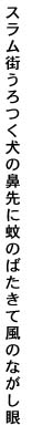 珍菌一族![]() TSUCHYからのメールで フランチェスコ教会での<チルコランテ>の解体も ファビオたちと無事に終わったとの連絡。 ヴェネチアで六ヶ月暴れていた個展もついに終わり、 今年もふた月足らずになったか。 ロンドン、プラハ、パリ方面から 来年以降のオファーもマネージャーに届いている。 <世界戦略>なぞという仰々しいスローガンのないオレは 砂漠を行くアルチュール・ランボーのように、 ただたんたんと往ける処まで行くのである。 黄色く色づいた葉っぱの散るジカンが迫って、 大きなヒカリのカタマリに水を使い研磨する 制作ローテーションの冬も、近づいてきた。 大武川は甲斐嶽から吹き下ろす風の通り道で、 その川縁に建つFACTORYの 北西に面したオレの部屋は、いつも零下の冬になる。 眠っているあいだに体温を奪われた筋肉が 朝を迎え痛みやがるから、 ストレッチで筋を伸ばしてからの作業になる。 「今年の山はマツタケは駄目だったけど、 <野生シメジ>の群生を見つけただよ」 興奮気味で村のSと大工のTが 採ってきたばかりのキノコを分けてくれた。 「寒いだねぇ。トタンにベニヤ板を打ちつけただけの この部屋じゃ、野宿しているのと変わらんじゃあねぇ」 鍋を突きながら、ショーチューを呑んでいたSが 白い息で言う。 「何とかならんもんかな」 オレの溜息も白い。 「断熱材入れて壁を作るしかないだねぇ」 部屋を見回す大工Tは赤い顔で言う。 「ゼニはねぇだよなぁ…」 オレも思わず甲州弁になっていた。 Tとオレは指を立てながらゼニ交渉する。 「節があって売り物にならない板を打ちつけて、 掘っ立て小屋の外壁ふうの内壁にしたいだよ」 「暗くなるけど、冬の間だけ窓を板戸にするけぇ」 「どうせ眠るのは暗い夜だ、構わんわい」 シメジのささやかなエン会で交渉成立した。 ヴェネチアのチャイニーズで喰った <珍菌一族>というキノコ料理を思い出した。 普請中のシゴトの合間に超特急で仕上げてくれるという。 ありがたい。 山からきた野生珍菌がオレに温かい冬をもたらしたのだ。 五メートル布で作るオブジェに 15000個の釦を取り付けるラフ・スケッチを パリに送ったのだが、 「ゴルチエと同じ入り口のメインホールを用意して 楽しみにしている。ただ四メートル七〇にしてほしい」 とのEメール。 越冬の掘っ立て小屋が出来るまで、 岡山の縫製工場でミシンを操って制作だ。 暮れにパリから戻れば四国で巨大な石を割り、 ヒカリと一緒に研磨したり、海にも漂うジカン。 ![]() 現象する場所をゲージツのFACTORYにするオレは、 ゲージツをしながら死んでいく生物なのだろう。 |