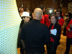 | パリの灯に釦の飛行 隣に座っているエルマーノが、 オレの膝を突いてエッフェル塔を指差した。 暮れはじめたPARISの空に イルミネーションがヒカリのレース編みのようだった。 そしてANTEPRIMAの腕時計を見つめ 「3、2、1…」カウントダウンし、 間を置いてから「あれっ」と呟き眼をあげた。 「どうしたんだ?」 と訊き直すと、彼の指差す先のエッフェル塔が 突然激しく青白いヒカリに フラッシュしはじめるじゃないか。 「スパークリング・シャワーだ!」 塔全体が美しく浮き上がった。 彼はオレにこれを見せたかったのだ。 それを左に眺めながらタクシーが会場の宮殿前に着いた。 鉄門扉が細く開けられた入口で、 屈強なガードマンがチェックしていて 招待状がなければ入れないらしい。 フランス人の美術評論家のドミニク・ステラも、 招待状と身分証明書を照合される厳重さだ。 「KUMA、パスポート持ってきた?」 「手ぶらさ」 「でもKUMAはゲージツ家だから大丈夫」 エルマーノが印刷してある作家のKUMAに 間違いないないことを説明すると 「OK、ムッシュ」。 IZUMIさんはオレの<釦の飛行>に合わせて、 街の店で見つけた貝釦で出来た帽子を載せていた。 さすがにファッションの心遣いが嬉しい。 ドレスアップした人たちでごった返している中を 掻き分け、<釦の飛行>の展示場所まで 彼女を案内しながら誇らしかった。 ![]() ![]() 観るなり 「あっ、素晴らしいわ。おめでとう」 IZUMIさんが眼を輝かせた。 ひとの流れで揺れ、釦から垂れている 色とりどりの糸がなびいていた。 「KUMA、凄いわ。またやったわねぇ」 ドミニクもオレの頬にキスをする。 彼女はミラノMUDIMA個展のキュレーターだ。 もうオレの手から離れてそこに在るオブジェを 他人事のように眺めながらも、オレは満足していた。 あっという間にオブジェの前の二人を カメラマンらが取り囲み、 テレビクルーの取材攻勢である。 一番注目をあびているらしい。 『ゲージツ・ダマシイの底ヂカラのカケラを、 PARISへのオレからのほんのプレゼントさ』 シャンペンのほろ酔いで、独りほくそ笑んでいた。 カケラにしては大きいか…。 『明後日から一般公開らしいが、 大勢のヒト等も心地良くなればイイわい』 大混雑のなか、オレの気はすでに 次の浮遊先にとんでいた。 次々と<釦の飛行>にヒトが集まってきては 笑顔のフランス語を飛ばしてくるのだが、 何のことだかわからない。 マ、賛辞なのだろう。 コトバの主のファッションの大立者たちを、 IZUMIさんが次々に紹介してくれた。 ピエール・カルダンだけは分かった。 ![]() |