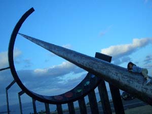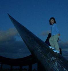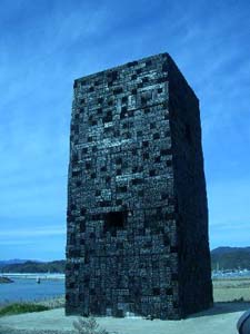 | 浮遊エン会巡礼 明治二十七年、爺さんは十七で高知から 屯田兵になって北海道に渡った。 十七歳になった時、北海の街を出たオレは 海峡を渡り内地に着いた。 八年前にはじめて高知の中村に来て <うつろう>を創った。 一緒にシゴトをした高知の土木民から釣りを教わり、 海のつかの間に漂う遊びを知ったのはその頃だった。 以来、年に二、三度高知に来ては、 長いつき合いになった高知民の連れ等と 海に遊ぶようになった。 南国の春のような高知空港に着くなり、 高知民のひとり北村社長の出迎えだった。 イタリア遠征サポートの表敬に<技研製作所>を訪問。 狭い都市部における道路工法 <ミラクル・アンダー>の開発中の土木機械と 工法のパイオニアたちは、もう始動していた。 ゲージツ家は今少し浮遊することにして、赤岡の北村邸へ。 何度も訪れた門を飾っている、 いまではすっかり姿を消した 左、右がそれぞれ男飾りと女飾りになっている 大きな門松が、まだ新年の気配だ。 ヒトがヒトをよび、酒盃が飛び交い、肴が集まり、 激しくなっていくいつもの高知エン会。 翌日、高知市内でまたも呑み、 札所巡りのようなエン会をすり抜けると、 H氏、E氏と連れだって やっとグレ釣りに柏島に向かった。 途中の春野町に寄り、二年前に、 四トンの風倒木や間伐材で創ったキューブを燃やし、 待機した消防車で炭化をコントロールしながら仕上げた <森の記憶>に会った。 ![]() イイ風化の具合を確認し、 柏島まであと一時間、四万十川に差しかかり突然 <うつろう>を見たくなった。 八年前のオレに会う気になったのだ。 『もうすぐ日没。間に合えばイイが…』。 潮風が鉄のところどころに、 土に戻るうつろうジカンを刻んでいた。 先端があの時と変わらず確実に真北を指している オブジェの手前で、幼女が助走をつけて 走り出すところだった。 オレが初めて灼いた色硝子の板も健在で、 弱いヒカリを透過していた。 宙の北を目指して駆け上り、 三八度の勾配の三分の一あたりで 彼女のトルクがゼロになったところで、 オブジェに抱きついた。 <うつろう>を創った時は まだこの世に来ていなかった彼女は、 知るはずもないオレに屈託のない笑顔をくれた。 ![]() 駆け下りまた助走をつけては、 宙に駆け昇ることをくり返すが、 いつも同じ処でトルクが尽きた。 車の中から心配そうに見つめている両親の目などは すでに眼中にないらしく、疲れを知らない子供は、 夕暮れの宙への突入を何度も試みる。 そろそろ柏島に向けて再出発しようとした時、 彼女はついに<うつろう>の今までより五センチ高い処で、 バランスを取りながらすっくと立った。 蠱惑的に大人っぽくうつろった顔が振り向いた。 ![]() ミラノ、ヴェネチア、リド島、PARISと 行商のように目まぐるしく ヨーロッパ遠征をしてきたゲージツ家も、 ゼニとジカンのロスが大きい オブジェの海路輸送ではなく、 海外へ躯ひとつを運んでは制作する手だてを そろそろ考えなきゃなぁ…。 柏島の渡船<大黒屋>に電話。 「今日は泊まり客でいっぱいだけど、 ガレージのうえなら素泊まりでどうぞ」。 スーパーマーケットで仕入れた一升瓶と肴の数々で すっかりイイ気分。 朝、出港時間に遅れグレ釣りは諦めた。 そろそろ浮遊ジカンに区切りをつけてゲージツに戻るか。 |