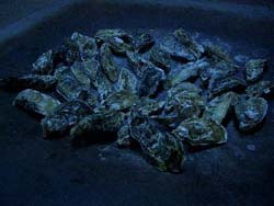 | 寒波に襲われたゲージツ家 石切場での作業は朝八時からだ。 圧搾空気の振動で感覚が麻痺してくる手を休める。 「むかし白蝋病ってのがあったよなぁ」 「血行不良で真っ白くなった 年配の石工さんたちの手を見たことがあります」 ヨシが生真面目に言う。 「ま、昨日今日でハクロウになるわけではないですけど」 石を割るイメージを描き込んだ線に、 オレはまた矢(クサビ)の位置を印し 削岩機を打ち込んでいく。 ![]() 小雪が舞いだした今日の牟礼は 四〇年ぶりの寒波だという。 なんとか今日までに削岩作業を終えてしまおうと、 腰や背筋に痛みをだましながら、 コツはだんだん覚えてきたから作業は早くなっている。 作業中はハツリ孔が曲がらないように 気を遣っているだけで、 ヒマな頭蓋内では どうしてこんな厄介な方法を 選んでしまうのかと後悔したり、 自分の頭蓋から発生したゲージツ・ジカンだから 仕方がないと納得したり。 風がいちだんと冷くなり 石粉に雪が混じってきた五時までひたすら続け、 どうにか全体の形が見えてきて 予定通り削岩は終わりそうだ。 悪寒と吐き気が襲ってきて、 脇の遍路道を独り黙々と通り過ぎて往く 白装束を見送っていると、 白いボルボが滑り込んできた。 この親柱の山梨までの運搬と 設置作業までお願いする 地元のマツヤマ運送のシゲちゃんだ。 「こんな冷やっこいのに、シゴトなぞしてホッコか? 石切場もみんなとっくに休みにして、町は静かだぞ」 身も蓋もないことを言う。 「初ちゃん誘って牡蛎焼きでも喰いにイッかい」 初ちゃんは消防団の分団長だ。 「いいなぁ」 暖かい処に行きたかった。 志度湾に面した漁師町にある牡蛎小屋だ。 漁網や魚箱が積んである寒い土間の 真ん中に下がった裸電球の下、 大きな鉄板が鎮座して周りに木のベンチがあるだけの 殺風景に入っていくと、 「ようお出でなさんした。どこっから来たんな」 手拭いを被った長靴の小さな婆さんが一人出てきた。 言葉のわりにはせっかちで、 牡蛎箱からスコップですくい取って 鉄板の上にザラザラと殻のまま放り出す。 物凄い灰かぐらが舞い上がり、 ありゃりゃ…と思っているうち治まる。 火ばさみと軍手の片方が人数分置いてあり、 婆さんの姿はすでになかった。 ![]() ![]() 殺風景な小屋は暖まっていた。 火ばさみで頃合いのイイ牡蛎を取り、 軍手をはめた左手で抑えて殻をこじ開けて、 ハフハフ言いながら喰うのだ。 殻は足元のガンガンに放り、 すぐに次の牡蛎に黙々と取りかかるのである。 ワイルドなこの喰い方は、美味い。 オレの足元のガンガンがたちまちいっぱいになり、 そろそろ飽きた頃、 「ゴメンゴメン、遅うなった」 初ちゃんが一升瓶とビニール袋を下げて入ってきた。 「高知の川で釣ったんけん。食んまい」 ビニール袋には尺ちかい見事なアマゴが 一〇匹入っていた。 「橙を搾っただけの汁や。純アルカリじゃ」 八百屋をやっている初ちゃんは、 市場で大量に仕入れては搾って 町内の人々に、無料で配る人格者だ。 オレはそのあたりから、寒気と吐き気がはじまった。 今日の寒気はオレの体温とエネルギーを 奪いやがったようだ。 <橙の汁>でも呑んで早めに眠るか。 |