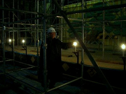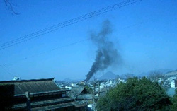| 夢も現も… 削岩した石で制作した親柱の仕上げは今がピークだ。 連日の快晴はオレを味方している。 息抜きに琴平まで足をのばし金比羅宮に行く。 禰宜の科野さん、文化顧問をしている田窪さんに 表書院へ案内された。 円山応挙の水呑みの虎。 襖絵の瀑布は縁側を跨いで外の枯山水につながっている。 一般公開されてない奧書院の襖の向こうに渡り、 春のヒカリを遮った障子の明かりだけで、 伊藤若沖や岸岱が描いた襖絵を眺めていた。 音すらもない空間で、眼がその暗さに馴染んでくると、 とりどりの花弁やシベが揺れだし、 無数の蝶々が羽ばたき燐粉をふりまいているようだ。 ![]() ヒカリが充満する屋外での作業では、 小さな不測の事態の連続をさざ波をおこした ゲージツ回路で対処していくのだが、 こんな寂光に包まれ閑かに止める 真空ジカンもイイものである。 暫しヒカリ談義が盛り上がり、 帰りに所蔵する高橋由一の数十点の油絵まで見せて貰った。 五年前、琴平の<金丸座>で 金比羅歌舞伎の初日を見物したのは、 桜満開の花冷えの日だった。 重要文化財になっている芝居小屋の 桟敷で眼にした本格的な歌舞伎は、 開演して間もなく雪が降り出す場面だった。 舞台の地明かりだけでなく 場内全ての安全灯まで一斉に消えたのは、 最初、停電かなと思った。 開け放つ天窓障子からの薄明かりだけのなかで、 次第に強まる紙の吹雪が本物に見えてくる。 青竹のサディスティックな打擲が残酷さを増す雪責め、 男を守りそれに耐える女形の福助が演じる中将姫は、 白塗りの肌が痛々しいほどの エロティックな美しさに輝いていた。 寸分の滞りをみせずたたみ掛ける芝居に、 アナログの薄明かり舞台に引き込まれて観ていた。 場が変わり我にかえったオレの膝に、 雪が吹き溜まっていた。 明かり取りから入ってきた散り始めた桜の花びらである。 不測の事態の停電で、 二日目からは停電のない照明で行われたと知った。 誇張した歌舞伎の化粧は、現代の明るさの元で見ると、 決して綺麗ではない。不気味でさえある。 アナログのヒカリの元で演じるために 工夫された舞台芸術なのだろう。 エレキ万能の均一仕掛けの サービス過剰な大劇場の芝居なぞ観たことはないが、 オレは選ばれた一期一会の幸運に満足したものだ。 観劇のさいに気になった 桟敷から天井まで突き立ててある四本の柱は、 重文に指定された時の、保存のための補強らしかった。 六メートルはある直径二〇数センチの鉄パイプが、 補強工事も終わり取り除くことになったニュースを 地元のテレビで観ていた。 牟礼の石切で作業しているオレに 琴平町から連絡が入っていた。 三〇数年<金丸座>を支えていた鉄パイプを使って、 オブジェにしてもらえないかという。 ![]() ![]() 金刀比羅宮を降りる途中の高台にある <金丸座>に立ち寄った。 町長からの説明を受けている時、 讃岐富士を背景に広がる琴平の町の真ん中に、 真っ黒い煙が立ちのぼりだした。 「火事だぞ」町長は急いで現場に駆けつけて行ったが、 ビニールハウスのビニールが燃えただけで鎮火した。 激しい息抜きの一日だったわい。 |