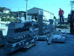 | ヒカリに包まれて ただひたすらに石を穿ちヒカリのカタマリを埋め込む。 ゲンノウで割った石を黙々と貼り、 朝八時から夜八時までただ淡々と続けている ゲージツ作業は、 辛いワケでもなく特に嬉しいワケでもないが 確実に、完成に近づいている。 ![]() ひと月前、削岩していたあのクソ寒い風はすでになく、 空は完全な春になって、 ヒカリのカタマリはあっちこちに 小さなスペクトルを放ちだした。 石場は<八栗>の麓にあり 八十五番札所への遍路道沿いにある。 一服しているオレの前を、 菅笠をかぶり同行二人と背中に染め抜いた 白装束の小さな遍路の婆さんがよろよろと登っていく。 降りてきた軽トラが音もなく、 婆さんのところで躊躇なくふわりと停まった。 運転席から差し出された手から、 彼女は両手を揃えて有り難そうに受け取り頭をさげる。 つかの間の会話はオレのところまでは聞こえなかったが、 遍路の成就を願うコトバを添えた<お接待>なのだろう。 運転手も婆さんに合掌してから、 何ゴトもなかったように軽トラがまた降りていき、 杖に躯をあずけた同行二人の文字が 右に左に揺れながら八栗を目指し登っていった。 石粉が舞い込んだオレの眼にスペクトルが射し込む。 太陽のヒカリに包まれた日溜まりで、 縮こまった掌を広げ指の関節を伸ばす 平安なジカンである。 『爪も伸びてきたなぁ…』。 ![]() 有り難い<お接待>で 浮遊者のゲージツ・ジカンを居候する家のテレビは、 幼児向けのDVDしか映らないし、 新聞を広げる気もおきない。 この時間にも、地球上のどこかでは 知恵を持った愚か者が戦に精をだしているのだろうし、 アートはビジネスだとほざく小心者は 相場に眼を血走らせている。 信仰なぞ持ち合わせないオレだが、 浮遊中もカバンに忍ばせた老眼鏡で、 朝の短い時間に意味はなかなか分からない <華厳経>を読む。 仕上がりも完成に近づいたから八栗寺に、 助手のYOSHIと上がってみることにした。 紅梅白梅が盛りだった。 仏閣に興味があるわけではない。 大きな樹や澄み切った空間が気持ちイイ。 さっきの同行二人の婆さんを追い抜いた時、 途切れ途切れに地虫の声が聴こえた。 般若心経だ。婆さんが苦し紛れに唸っているのだった。 眼下に霞んで広がる 牟礼から高松に繋がる家並みを見おろしていた。 テロリストにならないために、 ヒカリを創り石を穿っているのかも知れない。 |