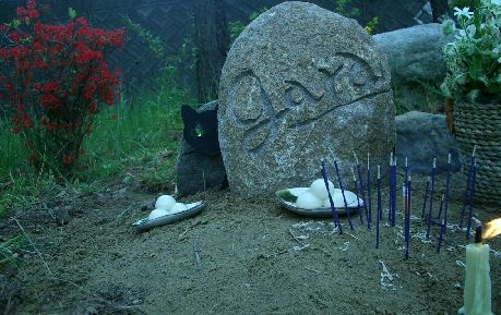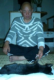 骨を包んだ毛皮だけになっていた GARAの呼吸の間隔はゆっくりとなっていき トクトクと早まる胡桃大の鼓動が皮を動かして、 小さくまだ生きていた。 後ろ脚が突っ張って硬直したが眼は美しいままで、 「俺はそろそろ往くぞ。覚悟はイイな」 と言ってるように思えた。 「ありがとう。もう心置きなく往ってもイイぞぉ…。」 オレは彼の脚をさすっていた。 彼は声にならないしゃっくりと痙攣を繰り返す。 「そろそろ往くかい…」 オレも呟いた。 鼓動はまだ続いていた。 正月に写経した<般若心経>の上に彼を移した。 突然駆け上がるように前脚を突っ張った。 「さいなら…」 とうとう旅立ったのだ。 写経のうえで天を駆けるような恰好で硬直した。 海のようなブルーの眼は たちまち幕が張ったようになって 力無く見開いていた。 オレのビンボーもオンナたちのメモリーも みんなお前は墓の中に連れていって、 死への一部始終を見事にオレに見せてくれたGARA、 お前は最後までいいパートナーだったわい。 雪に埋まったモンゴルのウランバートル草原の上で、 飢えて死んでいく牛を見送っていた一家に、 つかの間ご一緒したことがあった。 次第に生きたヒカリが失われていく牛の眼に、 覗き込んだオレが映っていたのを想いだした。 家出したまま三十五年会うことのないまま、 植物になった親父に会いに行ったときは もう<死>の物体に見えただけだった。 嵐山光三郎と深沢七郎親方を見送りもした。 GARAは親や誰よりも オレと一番長く暮らした生き物だったし、 一番身近な《死》というものだった。 般若心経の写経に包んでクーラーボックスに収め、 甲斐駒が見えるFACTORYに 埋葬することを決めていた。 「後ろを失礼します」 背中に弁当売りのワゴンが当たった。 アズサが韮崎駅に着いた。 狭いクーラーボックスから彼を出して、松林に墓を作った。 オレはまた<ヒカリ繭>の制作にはいった。