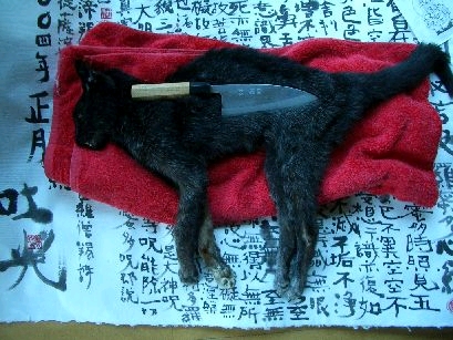 | FLYING CAT ヒラメ、マダイ、カワハギ、キス、ヤリイカなど、 千葉の海に漂うたびに狙った獲物を詰め込んできた オレの大型クーラーボックスは、 部屋に戻れば無用の長物になっていて、 久しぶりに開けてみると、 空しい四角い空気が詰まっているだけだった。 今年になってゲージツ三昧の山で過ごすことが多く、 釣りに出掛けるジカンがなくて、 この空気がいつ閉じこめられたのかも思い出せない。 ゴールデン・ウィークが始まった地下鉄の車内は、 気持ちのイイ空への行楽に向かう子連れの家族や、 いちゃつくアベックばかりで、 オレとはかけ離れた華やいだ空気感だった。 毎年この季節は果実の花が咲き乱れる 山梨、長野方面に向かうヒト等で、 新宿駅中央線プラットホームはごった返していた。 <アズサ>も<カイジ>はすでに指定席も、 グリーンシートも全て売り切れだった。 山へ向かういでたちに混じり、 大型のクーラーボックスを肩からさげているオレは、 海から来た異形の行商人である。 ヒトを避けるたびにゴトゴトと大きな箱が鳴った。 自由席すらデッキまでヒトが詰まっていて、 <アズサ>に飛び乗り なんとかトイレ脇の小さな隙間に押し込んだ クーラーボックスに腰掛けた。魚を詰める箱が、 他のコトで初めて役立ったのだ。 見慣れた沿線の景色はいっさい見えないが、 電車の揺れでクーラーボックスがゴトゴト鳴っていた。 日本一長い笹子トンネルに入ったらしく、 鉄路の音が大きくなり オレ独りが大きな箱の中に詰められて、 ゴトゴト揺れている気分になっていた。 《二十四年前か…。》 一九八〇年。芦花公園の植木屋の森にあった ベニヤで出来た物置の二階を<ベニヤ御殿>と名付け、 ゲージツ家はまだ絵を描きながらくすぶっており、 ときどき訪ねて来たアングラ劇団 <状況劇場>を辞めた根津甚八や、 小林薫と酒盛りをしていた。 その頃オレは、漫画雑誌<ガロ>に 三作ほどの劇画を描いて単行本にもなったのだが、 <ガロ>の編集長を辞めてイラストライターになり まだビンボーだった南伸坊も エン会に加わるようになった。 みんなまだ自分の居場所がなく、 身体を少しづつ揺らしては動ける 自分のスペースを拡げていたのかもしれない。 月見としゃれ込んだエン会がお開きになって、 ベニヤ御殿の狭いたたきで何かが鳴いた。 着流しで生息していたオレの高下駄の上で 真っ黒い小さなモノが ブルーの丸い眼をして見上げていた。 猫だった。 落とし主は伸坊だった。 電話をすると 「八月六日に五匹生まれて、 みんな引き取られていったんだけど、 小さくて気の弱い一匹が残ったんです。 根性を入れてやってください」 と言うのだ。収入源のほとんどは土方シゴトで、 滞りがちの養育費を送らねばならない身分だったオレは、 一人でも危ない状態だというのに 他の生き物なぞとんでもないコトだった。 「黒い猫はカラス猫といって、福を運んでくる」 という猫好きのコトバで、 あっさりと黒猫GARAと 一緒に暮らすことにしたのだった。 オレはドンブリいっぱいにキャットフードを入れ、 洗面器いっぱいに水を張って 一〇日も留守にすることもあった。 それでも生きていたんだ。 隙間だらけのベニヤ御殿は 石油ストーブを焚いたところで極寒だった。 二〇〇号の絵を描いているオレの足元で、 見上げて鳴くガラのピンクの口から 小さな白い息が吐き出されていた。 ビンボーは変わりなかったが、 まもなく鉄をゲージツするようになり、 GARAと一緒の引っ越しは 数十回繰り返されるもののすぐに慣れた。 溶鉱炉を手にいれて鉄を溶かし、 ヒカリがほしくなり硝子を削るようになった。 GARAはいつもそこにいた。 この数年はすっかりかっての黒豹の面影は薄れてきたが、 イタリア遠征のオブジェ群を創っている時も、 凱旋帰国してきた時も ブルーの美しい眼で迎えてくれた。 しかし、この一週間は急撃に弱って やたらと日向ぼっこをしたがり、 植木などの隙間をヨタヨタと歩き回る。 きっと死期を直感したのだろう。 オレは最後の瞬間まで見届けようと思っていた。 <誰でもピカソ>の収録で、ゲストの南伸坊と、 控え室で久しぶりに会った。 「えーっ、GARAはまだ生きていたんですか、 あのいちばん弱かった仔が…」 「もうそろそろ逝きそうだよ」 「他の兄弟はみんなとっくに逝ってしまいました」 落とし主の彼とこんな形で会うのも何かの縁だった。 NHKの釣り番組で島根に出掛け、 釣れないヒラマサを追って 来る日も来る日も日本海に漂っていた。 『待っててくれ』と念じていた。 とうとう釣れないまま戻ってくると、 彼は横たわったまま 美しいブルーの眼で待ってくれていた。 今夜がいよいよだと覚悟の添い寝していた午前三時。