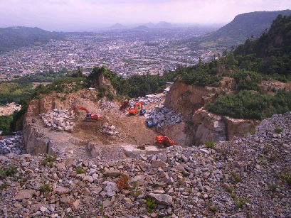 | 独り遊び 牟礼の石切場には、 切り出した大小の庵治石がゴロゴロしている。 大きいのは二〇立米はある。 オレはその石によじ登り横たわって、 梅雨の隙間に晴れわたり まだいくらか水分を含んでいるような空を眺めていた。 見るともなくただ空の彼方を見ている眼の端の、 切り立った庵治石の絶壁が 今にもオレにのしかかってくるようだったし、 オレは蒼に吸い上げられてしまいそうな 気分になっていた。 ![]() ![]() 視線は平行になっていたはずだ。 嗅覚もなく片方の聴覚も失い、 ボンヤリしていることが多かった ガキの頃覚えた独り遊びである。 交わることのない平行線にした 視線の焦点は合わなくなる。 額の真ん中がムズムズッとして、 少し恐ろしいような不思議な気分に襲われ、 たちまち、その場から いなくなってしまうような感覚である。 この瞬間が危ないけど好きで ときどき、裏山の茂みに寝転がっては 独り秘密遊戯に耽ったものだ。 身体の裏側で、お天道さんの熱で温まっていた 石の温度を感じていた。 少し熱く感じていたが すぐに皮膚と石の表面温度が馴染んで、 二〇立米の石にオレが同化したころ、 あっさりと、垂直な眼線の端に 絶壁と繋がっている蒼い空とさえ繋がっていた。 しばらく忘れていた独り遊びの感覚が甦っていたのだ。 奈良の夜に巨大に膨らむ<ヒカリ繭>や、 二〇トンのトラバーチンに宿したヒカリさえが、 自在に現れてくるじゃないか。 オレは今はじまったばかりのヒカリに遊んでいた。 するとどうしたことか、今まで感じたコトのない 匂いみたいな明快なモノが、額の真ん中あたりに感じた。 嗅覚のないオレにはコトバには出来ないのだが、 確かな感覚だった。 あれはヒカリの匂いだったのかもしれない。 「そろそろ、シゴトに戻りましょうか」 手持ち無沙汰に掛けてきた片腕・石工のヨシの声に、 生還したオレは石から飛び降りた。 足元に一本だけ咲いていたオニユリに気づいた。 よく見ると脱皮したばかりのカマキリの仔が 一匹とまっていた。 オレはまた西山石材のシゴト場に戻った。 ![]() |
