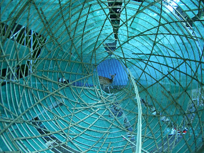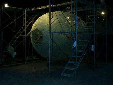 | 颱風颱風颱風 シャワシャワシャワ、アブラ蝉の暑苦しい声が降り、 炎天と夕立を繰り返す仮設工場。 蚊帳生地の<ヒカリ繭>がひっそりと膨らみ続けていた。 何一つ確実なモノなぞないこの世を浮遊する ゲージツ行には、 天変ばかりではなく不測の事態の連続である。 集中力とそれを愉しむ容量が頭蓋内になければ、 全体を眺める余裕もなくなり、 ただ指先だけを見つめて無表情になるか、 ヒステリックになって コミュニケーションを拒絶するように なってしまうものだ。 勤め人の二人は東京へ戻り、 <ヒカリ繭>チームの手元は 須田さんとカーペン兄弟の三人に減った。 ![]() 日中のクソ暑い二時間を休み、 夕方から再開することにして、設置場の確認にいく。 奈良に来て以来、宿舎と仮設工場の往復だけで、 今まで気づかなかったが 樹齢一〇〇年ほどの太きなクスのキを見つけた。 水の上に浮いていたり、地面に安定しているのではなく、 <ヒカリ繭>が浮遊するにはピッタリの樹である。 工場に戻り、「一気呵成に朝までいってしまうゾ」 「それがイイだね」須田さんの山梨弁が心強い。 カーペン兄弟の後ろで、 今まで遠巻きだった群から離れた小さな一頭が、 繭を覗き込んで頷いていた。 何処へいってもオレのゲージツに最初に興味を示すのは、 子どもか動物で、 モンゴル草原では羊の群と浮遊する少年たちだったし、 サハラ砂漠では駱駝のキャラバンと水くみの少女だった。 県庁役人のコリャ福野は、 おおよそ役人らしさから程遠い野人の動きに まだシックスセンスが残っている。 彼はコヤクニンの職場を自主休暇にし、 営む建築会社を休んだワダさんと一緒に オレたちのカレーライスを作って宿舎で待っていた。 砂漠や草原でいっぱいのお茶を入れてくれた 少年や少女のようだった。アリガタイ。 また真っ暗闇の仮設工場に戻って仕上げである。 風が吹いたり満月が現れたり 妙な空加減のもとで作業は続き、夜が明けた。 朝八時、カーペンが作った インスタントラーメンを喰う空が慌ただしかった。 「台風ですわ」 バイクで駆けてつけてきたコリャ君が空を指差した。 「なんとぉ! 追い払ったばかりじゃないのか」 「今度はニッポン製の新しいヤツですわ。 このままだと奈良直撃しまっせ」 「燈花会のオープニングは パーになっちまうな」 コリャ君とワダさんも手元に入れて いっそうピッチをあげた。 夕方、風が強くなり雨まで横殴り。 仮設工場にシートの屋根を括りつけ、 「これから天気奉りだ。 颱風の角度を一三度曲げて消してやるわい」 ショーチューが疲れた身体に染み込んでいった。 明け方、雲に切れ目が出来ていた。 ![]() |