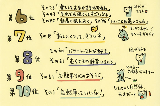 ▲たかしまさん直筆の『くまお(私的)BEST10』第6位〜第10位