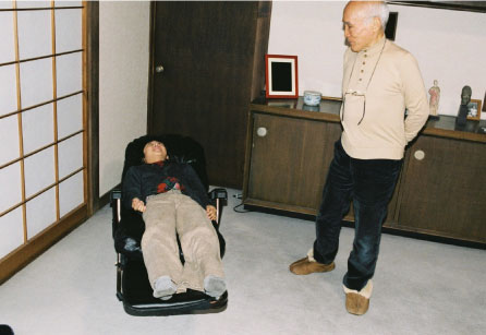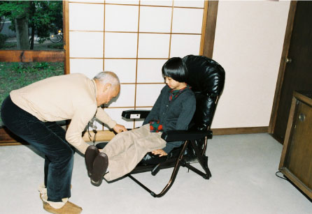 | 谷川 | (背もたれをたおしながら) こうすると、まっすぐになって寝れるの。 |