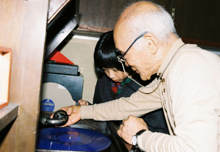 | 谷川 | この部屋でいちばん古いやつできこう。 手巻き式の蓄音機。 |