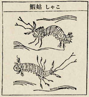 | ── | ハイ。さて、旬の魚は、 「蝦蛄(しゃこ)」です。 蝦蛄ってよく見ると、なかなか、 びっくりしちゃうすがたをしていますね。 おいしいんだけど。 蝦蛄は海にいるから 食べられると思いませんか。 陸にいたら‥‥。 |