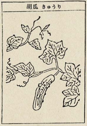 | ── | 平安時代から栽培と書いてありますね。 シルクロード経由で。 ヒマラヤ原産です。 胡瓜の「胡」の字が。 |