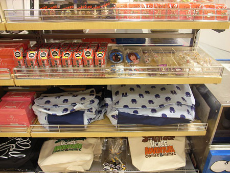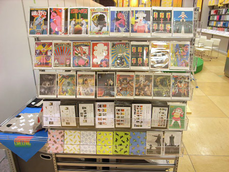 岡本太郎さん、横尾忠則さん、清水ミチコさんのグッズがギッシリ。