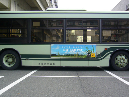 「ほぼ日手帳」の広告がついたバスが運行中です。
