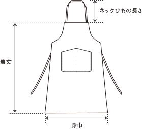 | 着丈 | 身巾 | ネックひもの長さ | |