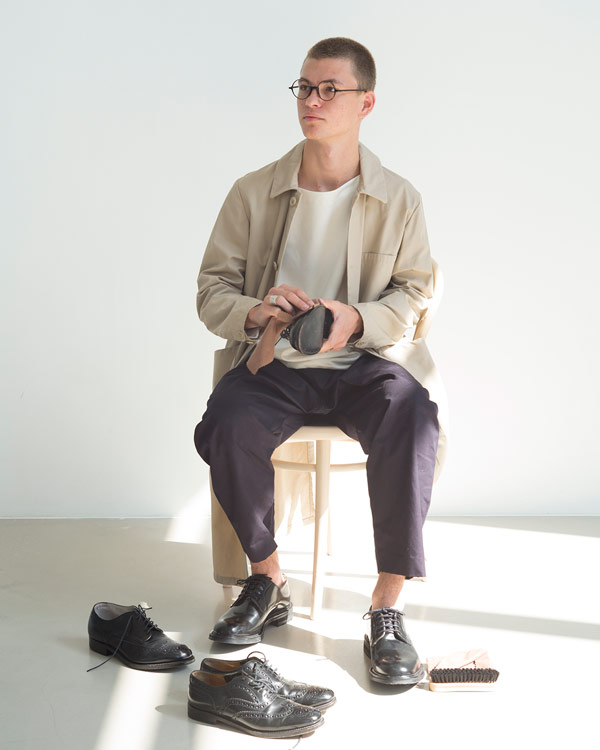 アトリエコート〈胡桃〉スモックTシャツ〈古白〉LDKパンツ〈濃藍〉