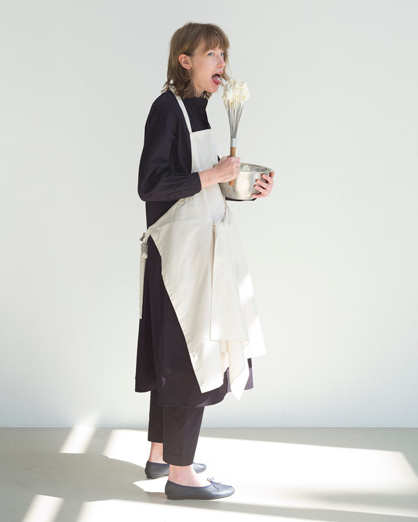 ロングスモックドレス〈濃藍〉エプロン〈古白〉LDKパンツ〈濃藍〉