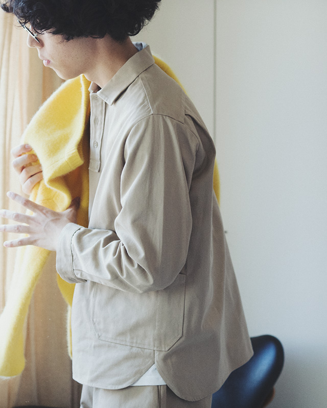 短めの丈と広めの身巾が特長のプルオーバーシャツは、