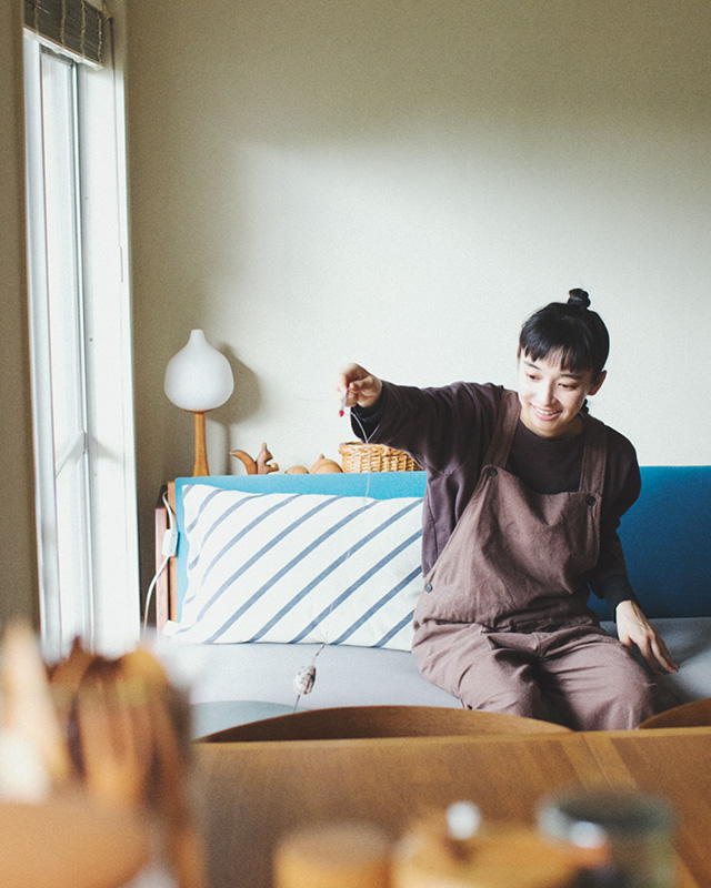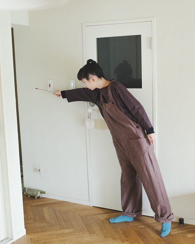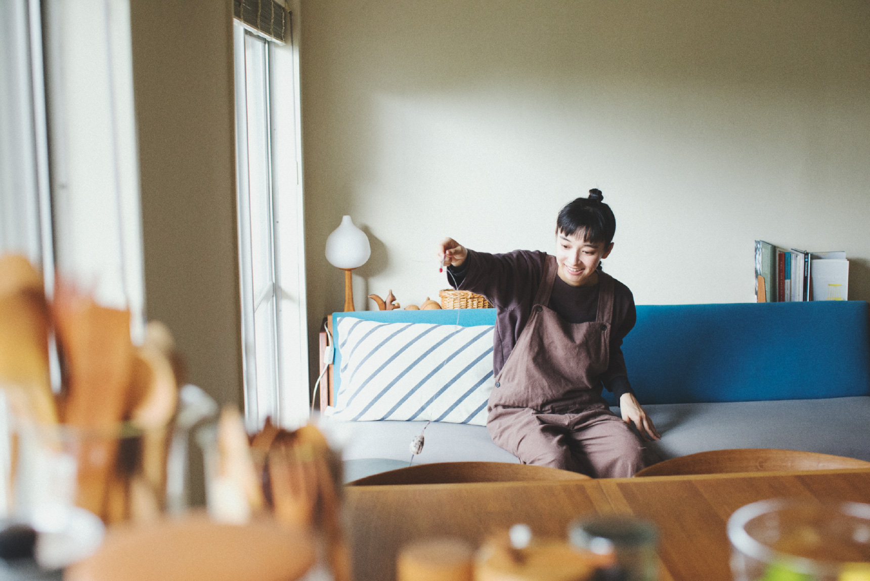 洗いものなどがしやすいよう、袖は思い切って短めに。