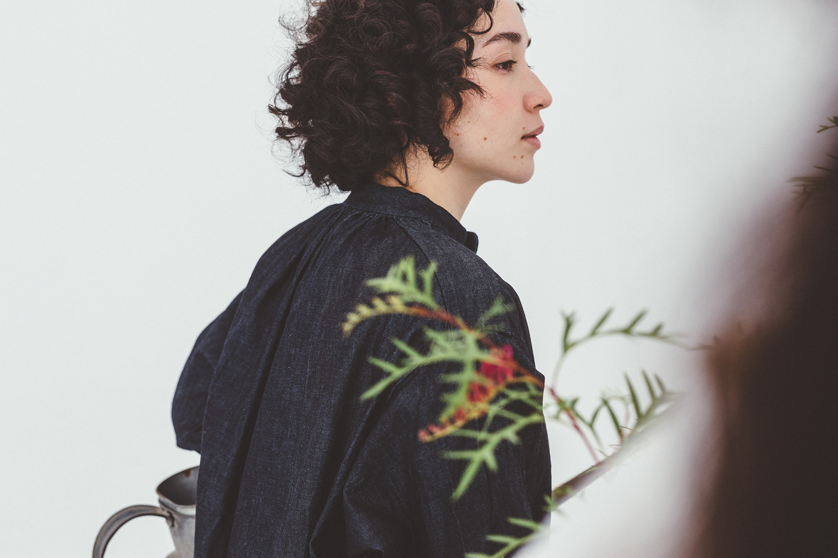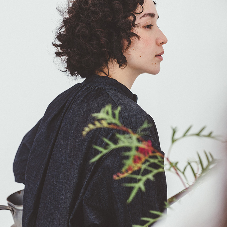 薄手の綾織(デニム)生地を用いています。モデル着用リスト >