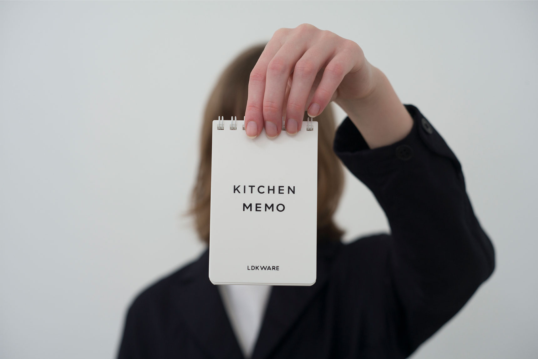 LDKWAREがはじめてつくる洋服以外のアイテムは、耐水性のある紙でできたメモです。水にぬれてもシワになったり破れたりすることがないので、レシピメモがわりにキッチンに置いておくと便利です。もちろん、別の場所で使ってもまったく問題ありません。お風呂で思いついたアイデアを書くとか、ガーデニングや雨天時の屋外作業のときに使うとか、防災用品として常備するとか、自由に使ってみてください。