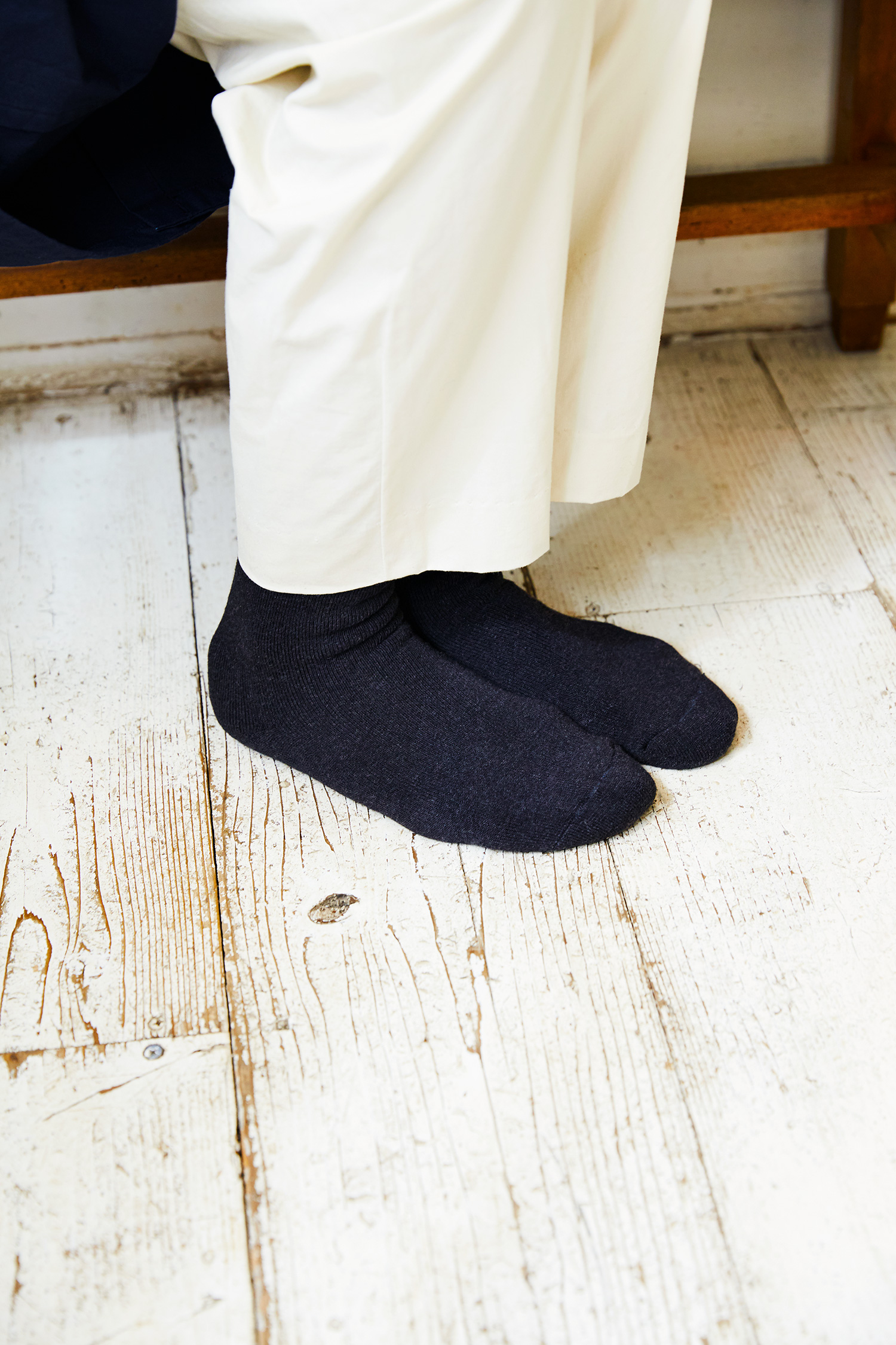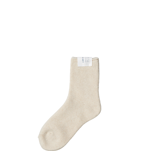 YAECA定番のウールソックスをもとにコットンでつくった、季節を問わず履ける、シンプルなソックスです。裏がパイル地のため、ふっくらした風合いと、やわらかく気持ちいい履き心地をたのしめます。女性にとっては、やや厚すぎるかもというご意見をもとに、これまでよりすこし編み地をうすくした結果、靴やスタイリングに、より合わせやすくなりました。これまでの単色を、2色の糸で編んだ杢調にすることで、見ための質感もアップしています。CLASSICの馬布と完全におなじではありませんが、近い色合いをえらんでいます。