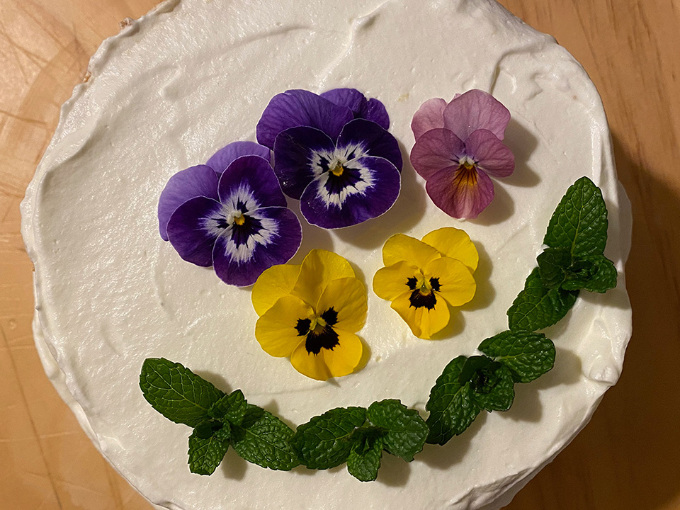 こどもの誕生日、ケーキにはお庭の花を飾りました。