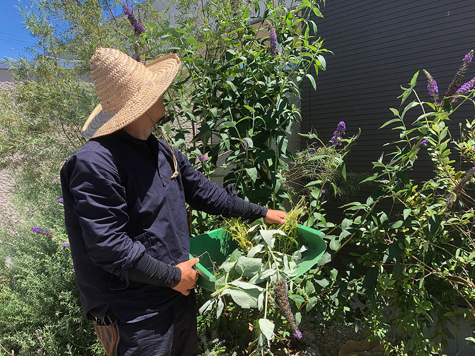 この日は大きく育ったブッドレアの剪定をしました。