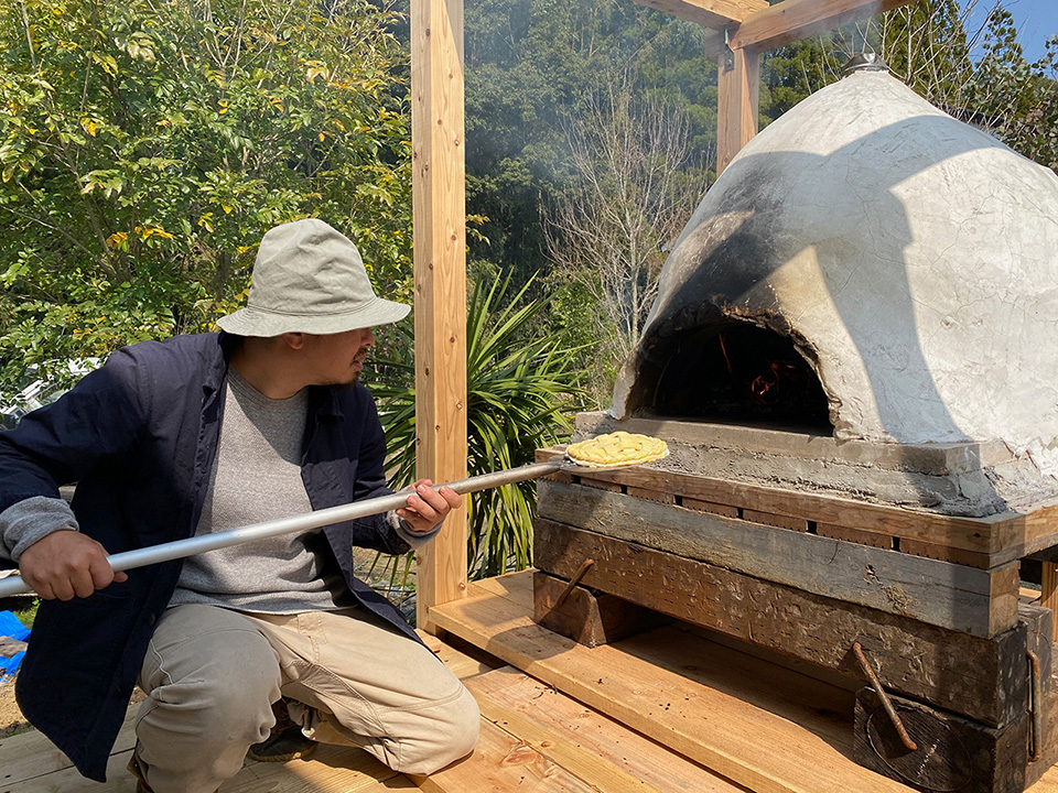 手づくりの薪窯が庭にあります。