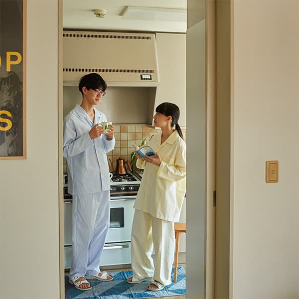 お休みの日に、こんなちょっとかわいいパジャマで