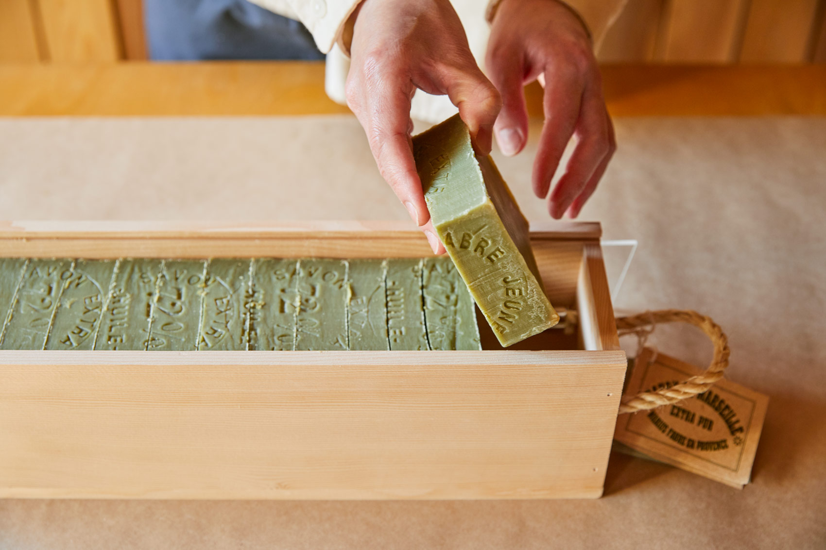 • 木箱なしタイプは、石けんが紙箱に直接入っています。