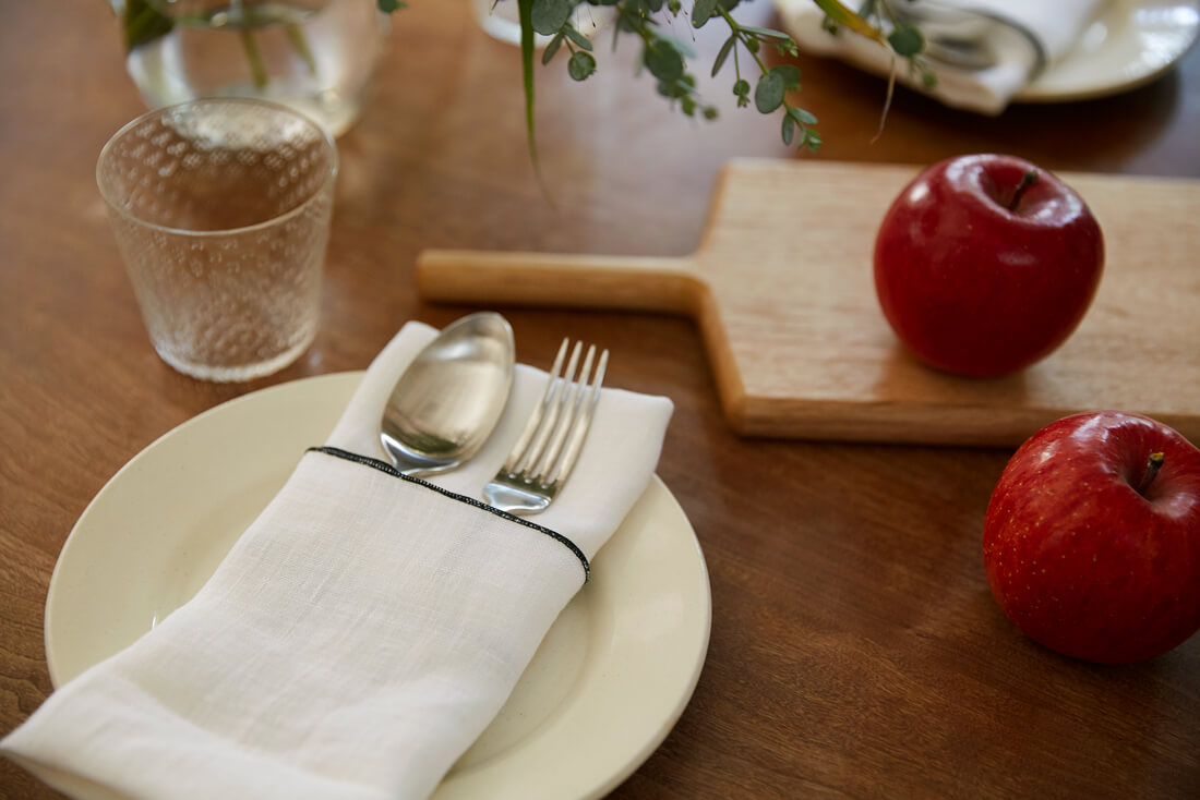 白いリネンクロスは壁にかけた姿も清々しく、きれいです。
