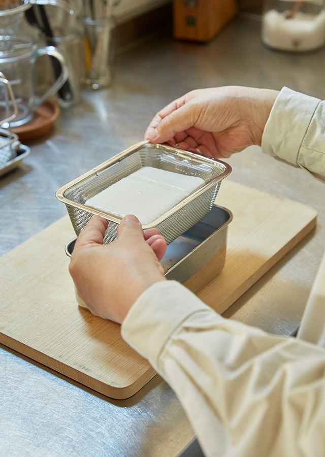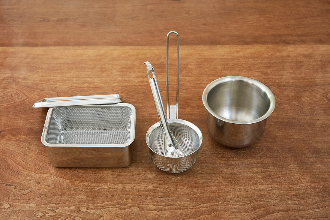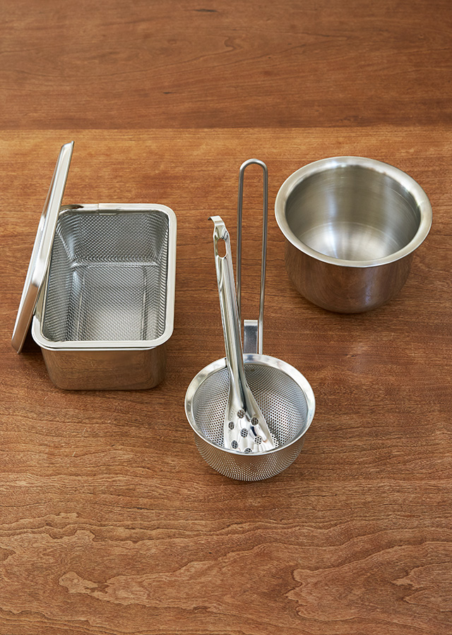 さびにくく、じょうぶなステンレス製の味噌こしです。