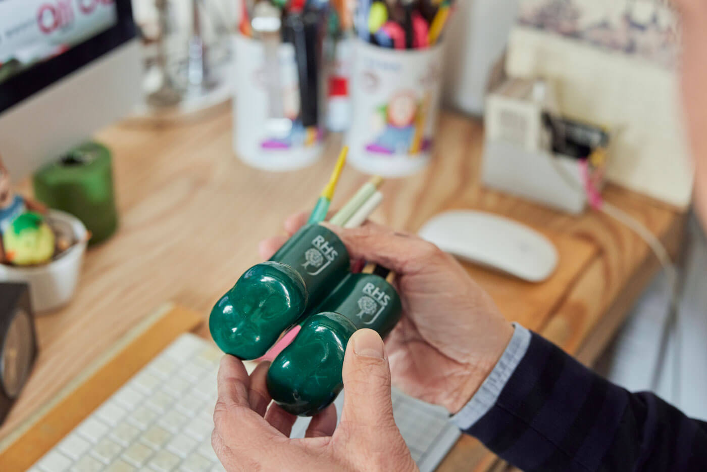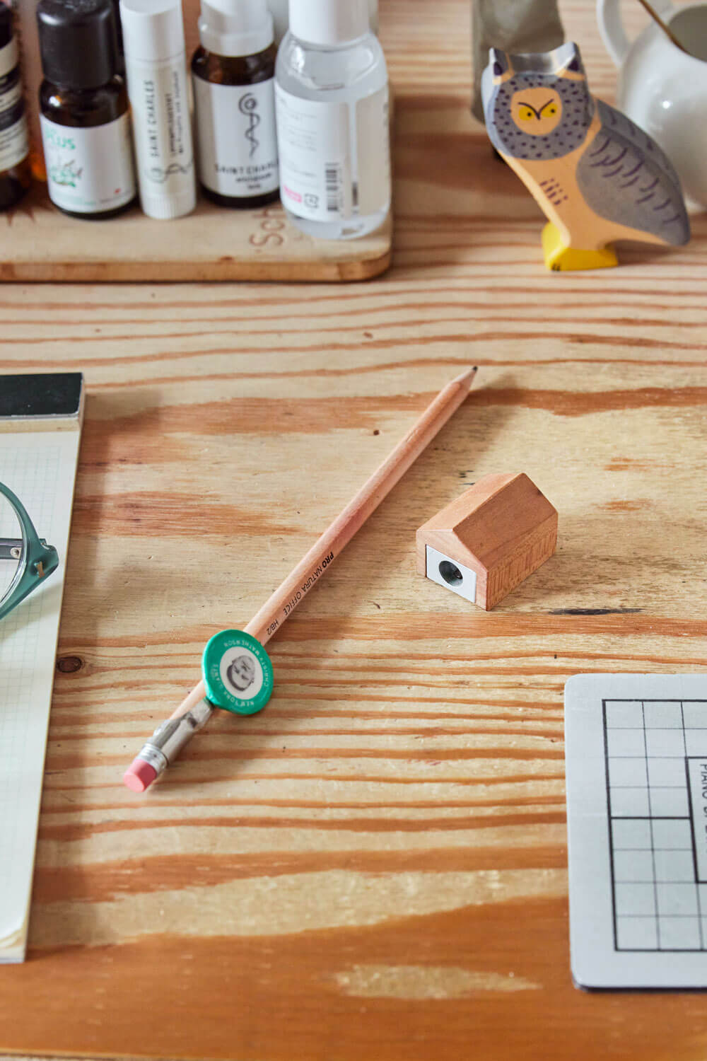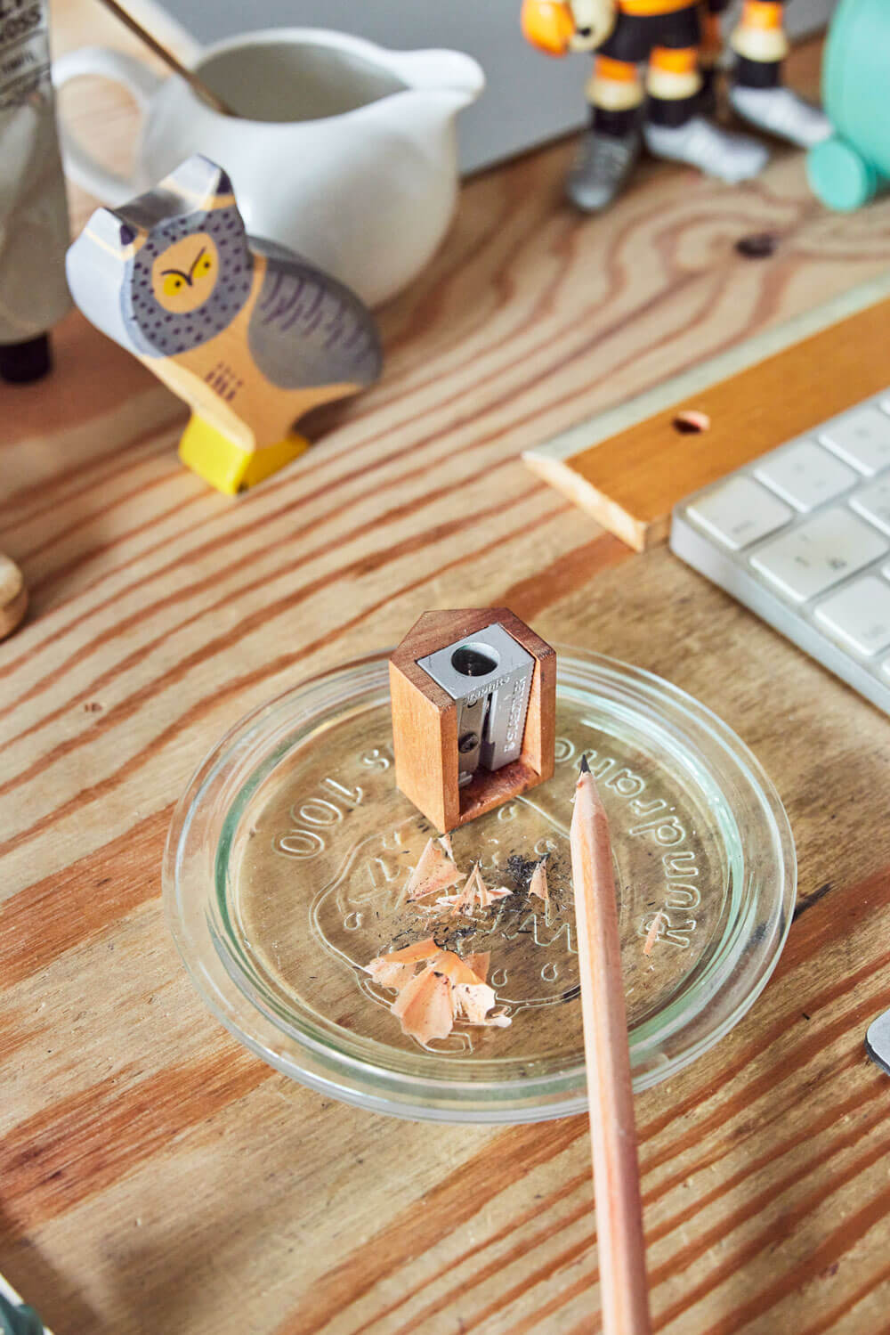 かわいいペン立て、そして鉛筆削りです。