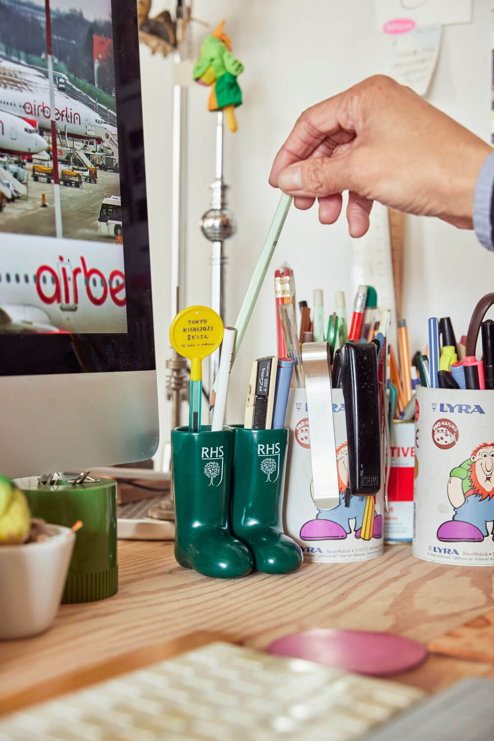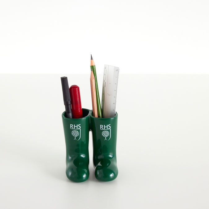 ぽってりとした、長靴のかたちのペン立てです。