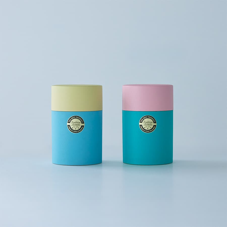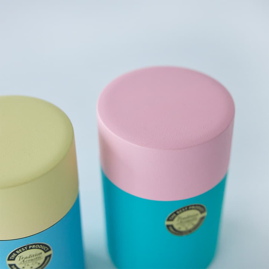シンプルな円筒形、つまみのある中蓋、と