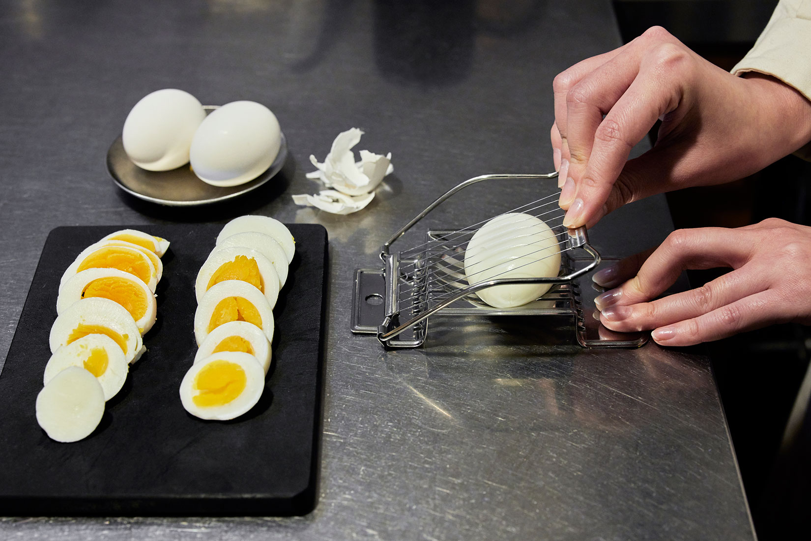 ステンレスのゆで卵カッター