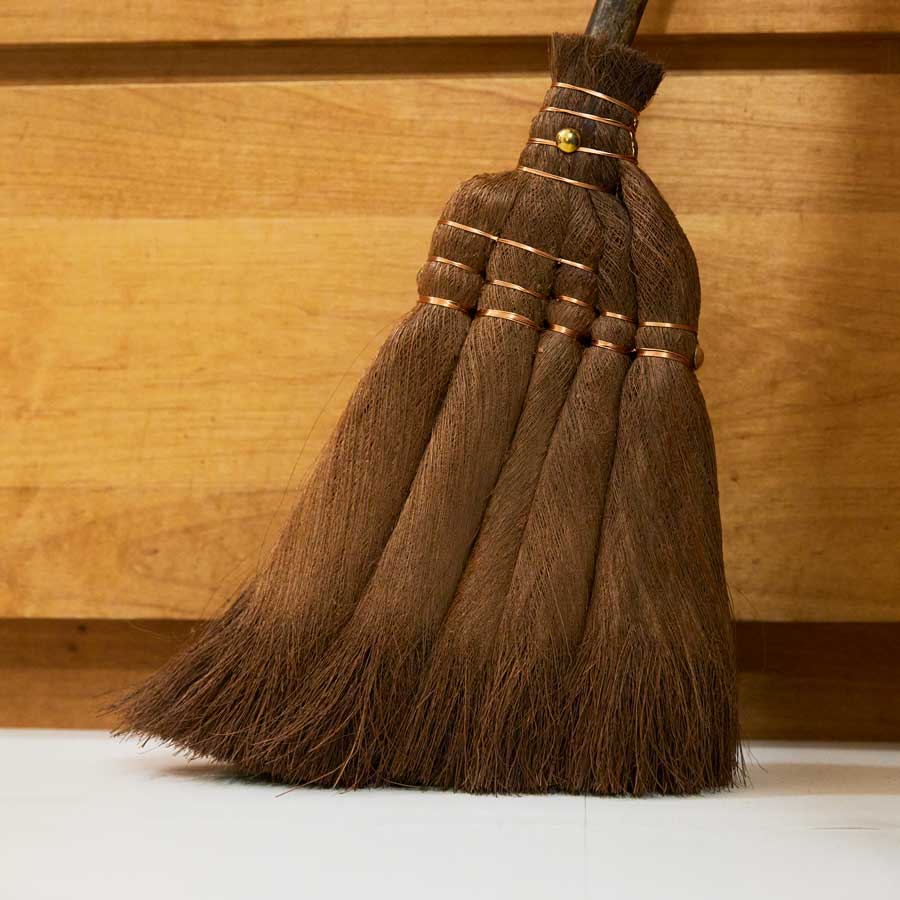 シュロのほうきは細かな砂のようなゴミも集められます。