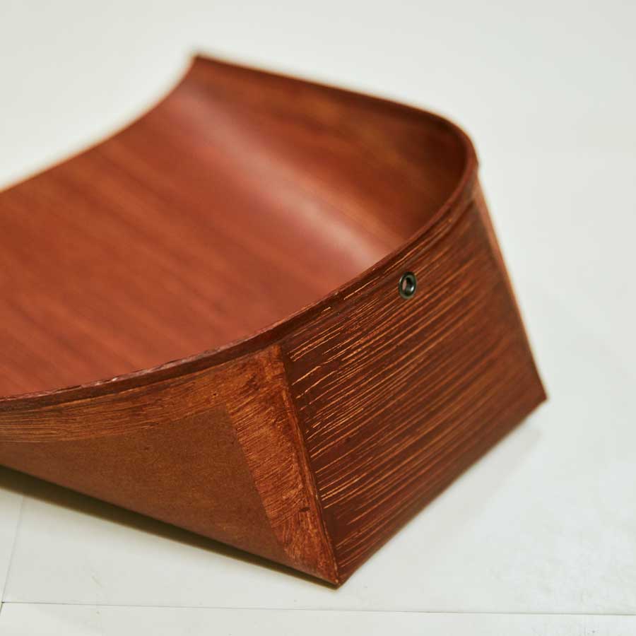 厚紙を張り合わせ、柿渋を塗って作った