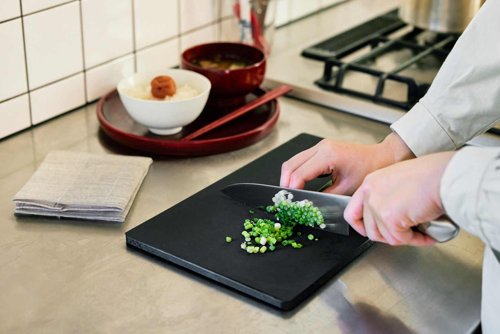汚れが目立たない歯当たりの良い黒いまな板と、