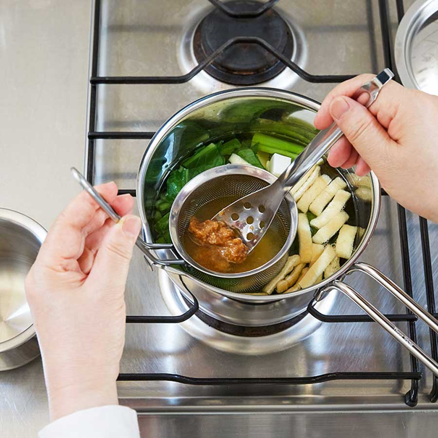 凸凹がなく細かい穴でなめらかに味噌が溶け、