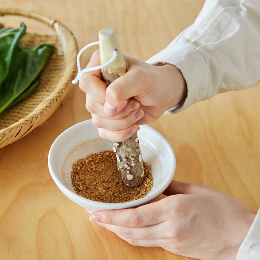 左利きの人にも使えるすり鉢と山椒のすりこぎ(白)
