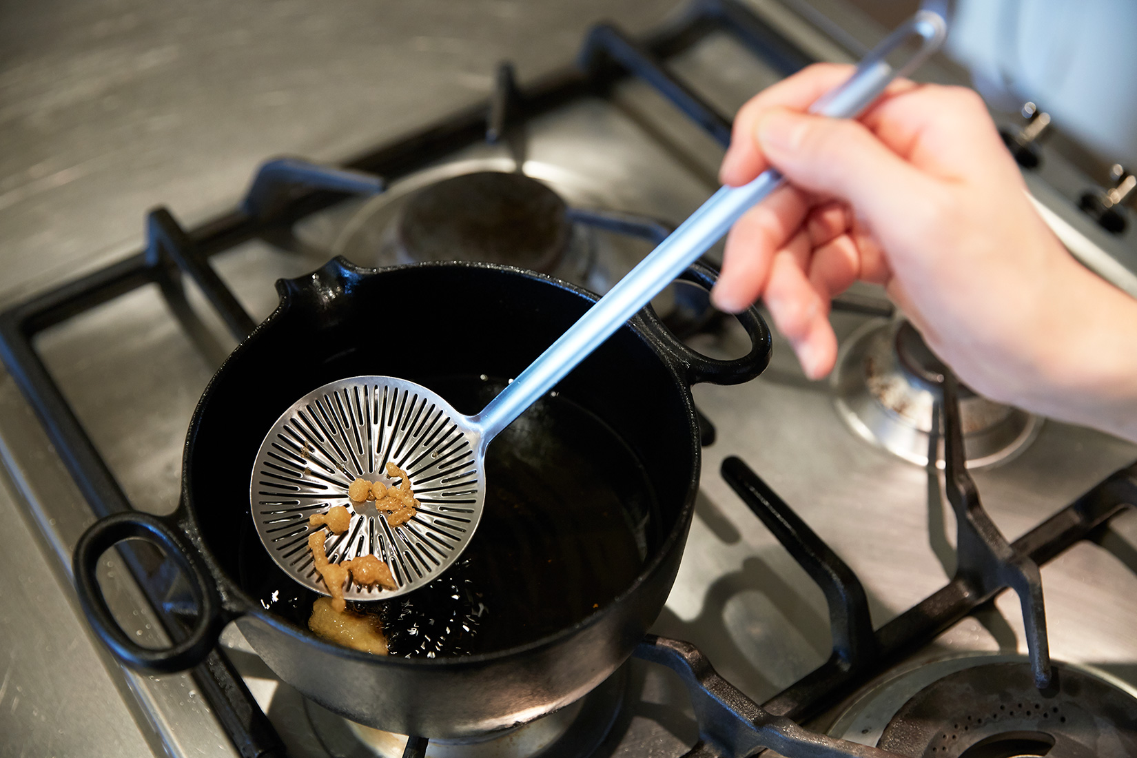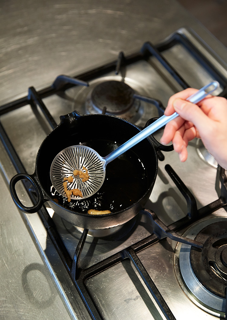 揚げながら鍋を動かすのもやりやすいです。