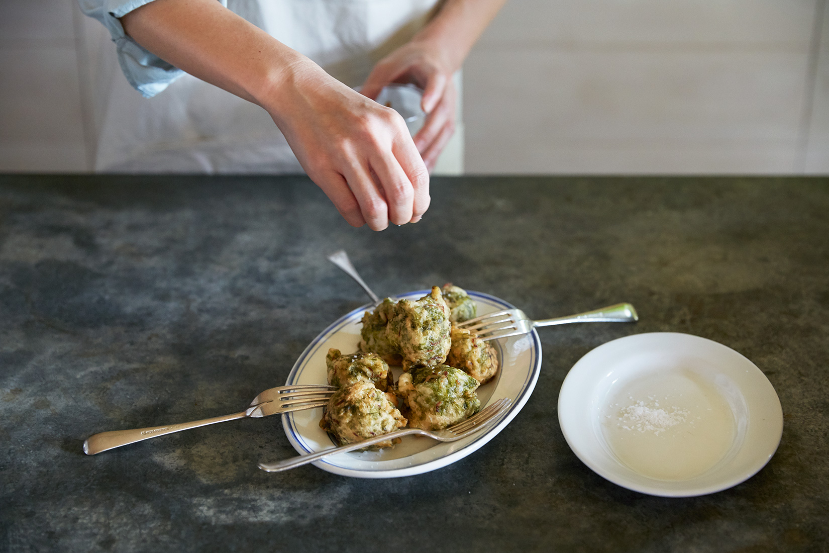 先が細くて盛りつけやすく、ころがらないのがいいです」