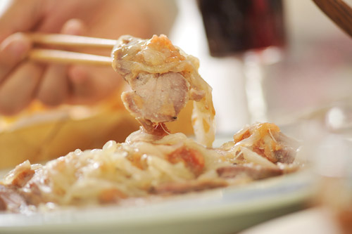 豚肉を冷蔵庫から出し、常温にしておきます。