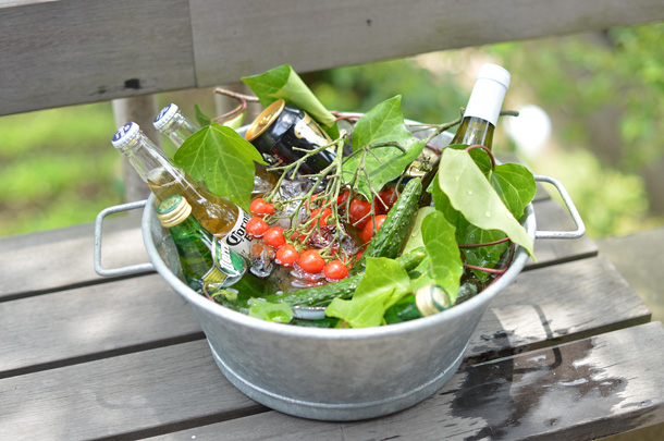 飲み物は、こんなふうに大きめのバケツに氷といっしょに。
