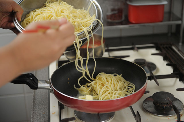 具を調理している間に、いい感じにのびたスパゲッティ。